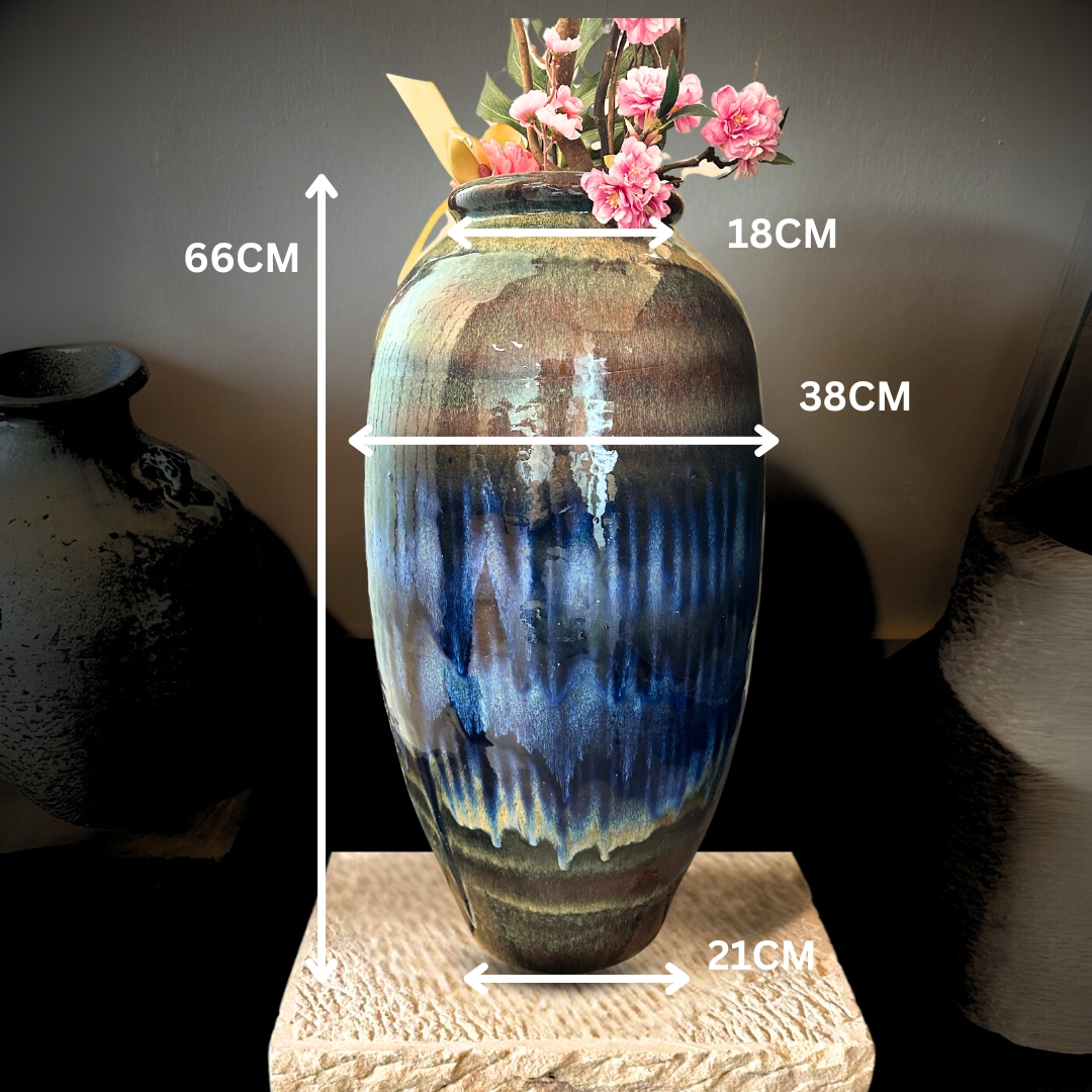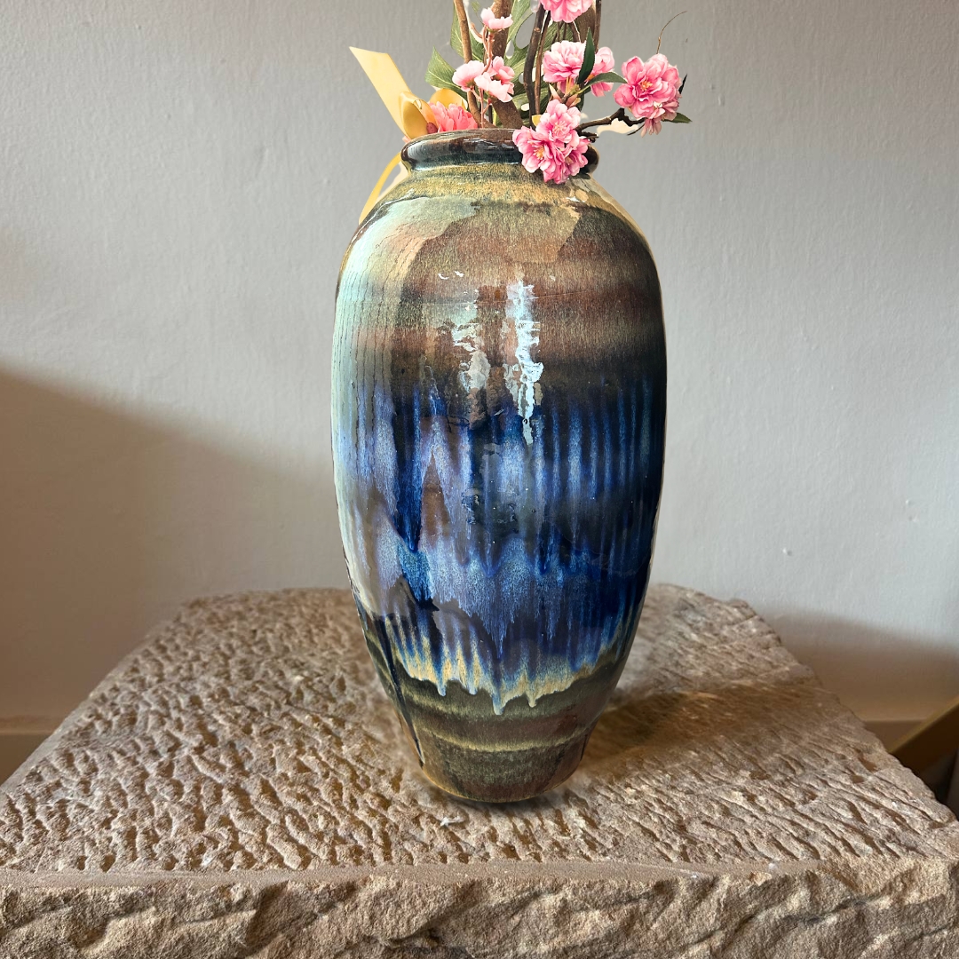 This unique ceramic vase features a smooth, textured glaze that mimics the look of an April shower. Suitable for indoor or outdoor use and has no drain hole.