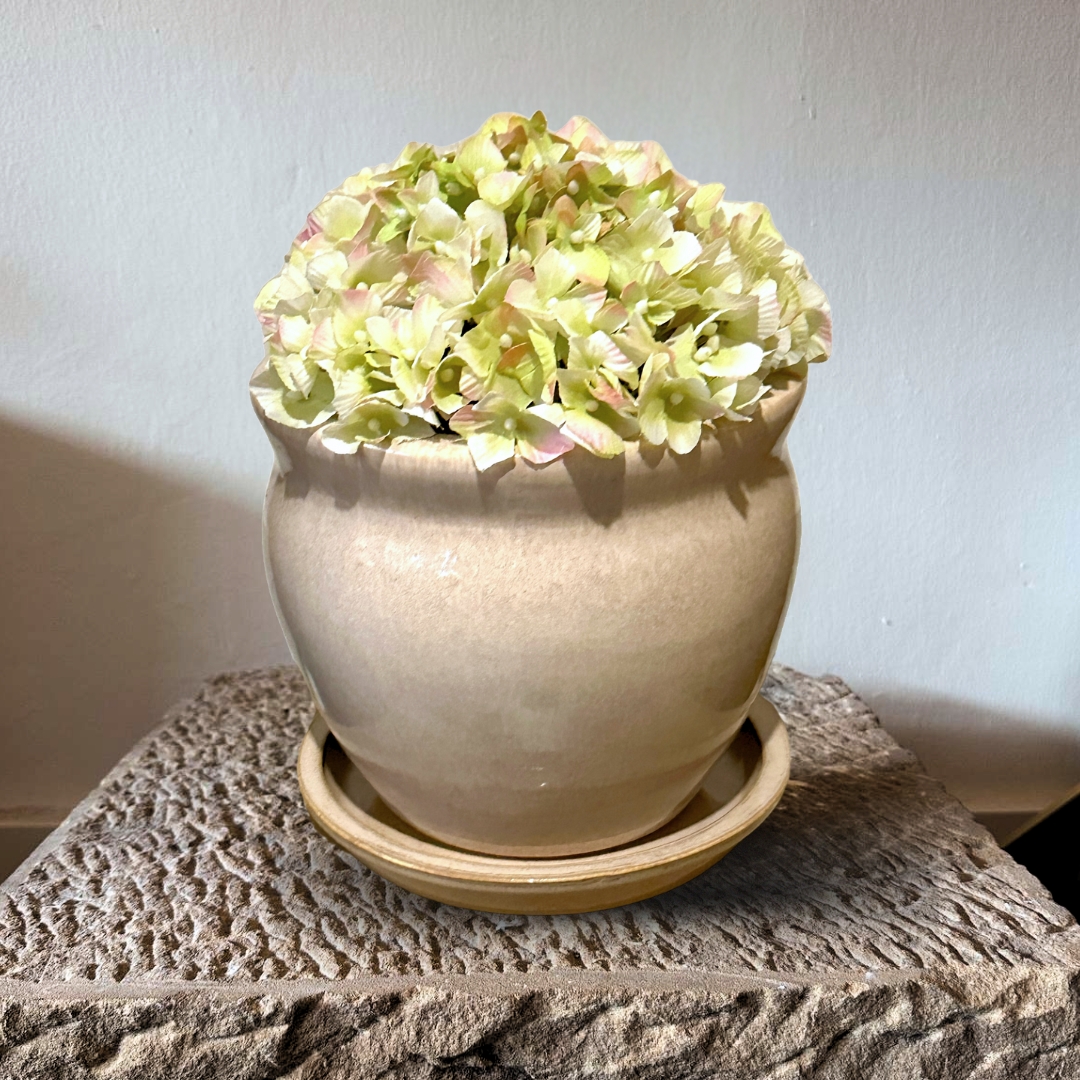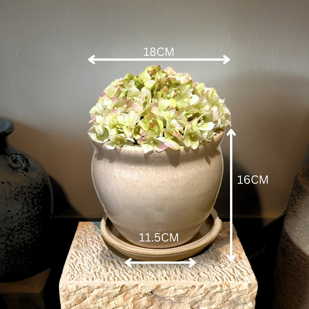 This handcrafted ceramic honey pot features a unique glazed finish. Perfect for indoor or outdoor use, or as a decorative piece. It comes with a water collection dish and drain hole.